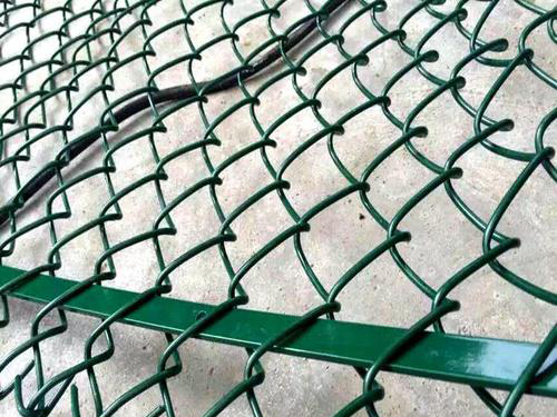 體育場護欄網常用規格:1、包塑絲經 3.8mm 2、網孔 50mm X 50mm 3、尺寸:3000mm X 4000mm4、立柱:直徑60/2.5mm鋼管 5、橫柱:直徑48/2mm鋼管焊接 6、連接方式:焊接 7、防腐處理:防銹底漆+高級金屬漆。